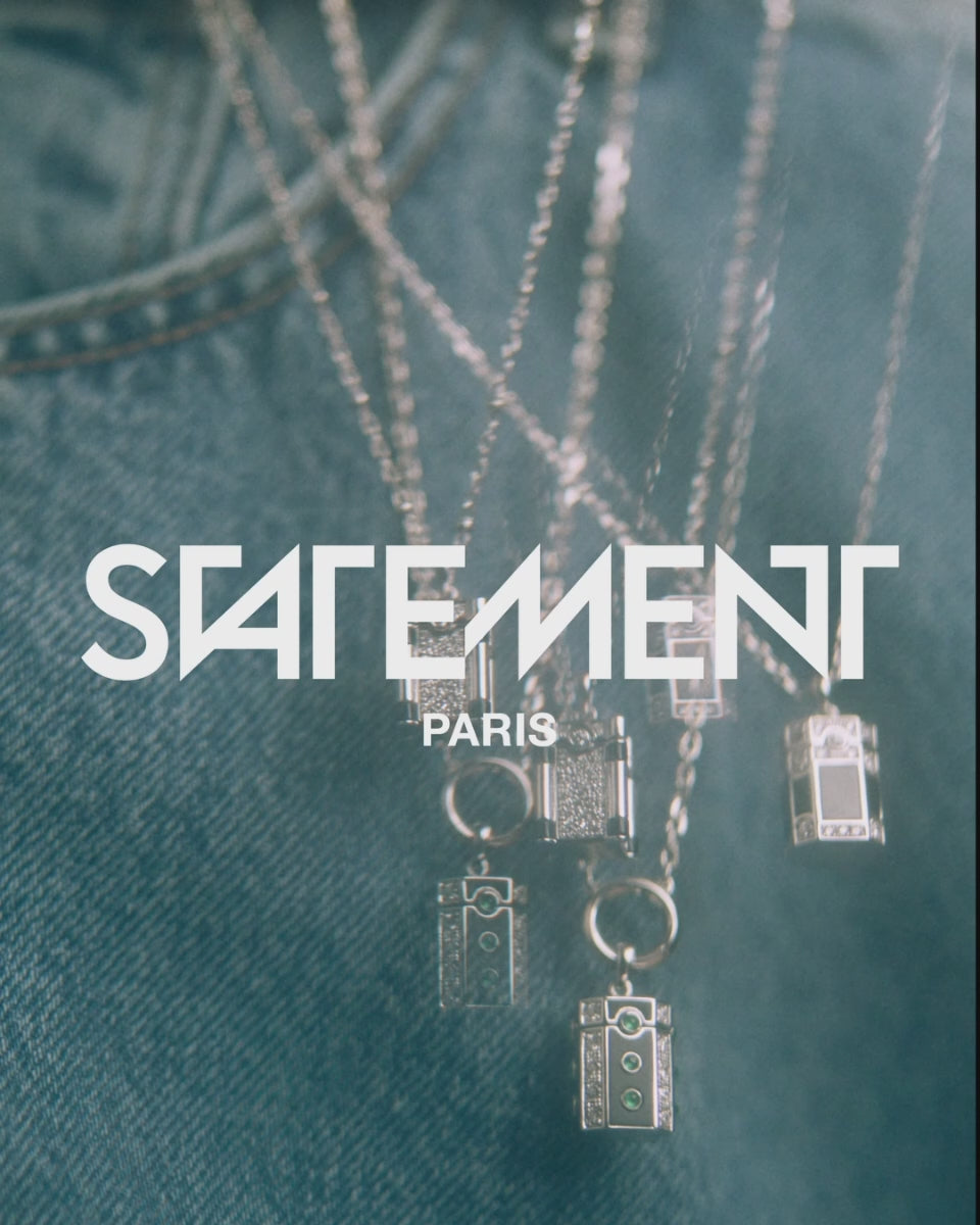 Drawing design inspiration from Tibetan mantra boxes, this three-dimensional pendant opens to reveal a single round-cut diamond inside. Suspended from a beaded chain, the sterling silver charm decorates its outer sides with inlaid black agate and smaller pavé-set stones.